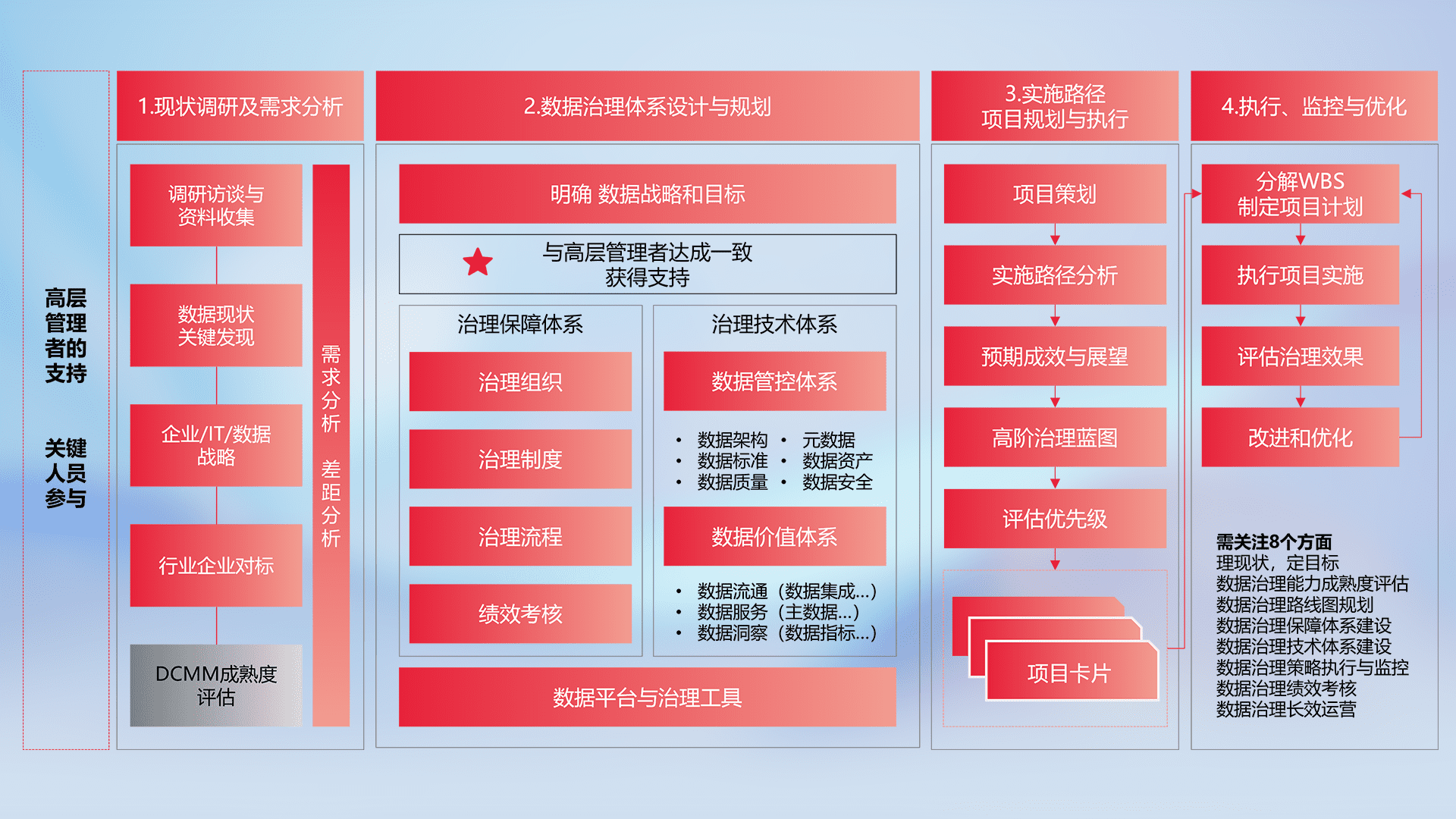 制定并执行统一的数据标准,,,规范数据定义和格式,,,,消除冗余和不一致性,,实现跨部门和跨系统的数据一致性,,为企业提供标准化的数据基础。。。。